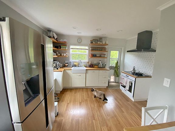 Single-family home, custom-designed and completely renewed in 2023. Two bedrooms and a large furnished basement that can be used as an office, guest bedroom, or exercise room. Two bathrooms with upscale fixtures. One-car garage with extra space for storage or a workbench. Another private parking space in the driveway. A renovated deck leads to the large backyard, well-maintained lawn, and gorgeous wisteria tree at the front. The house is available on Oct 19th. Scheduling tours Tuesday through Thursday Oct 15-17 after 3pm. Renter pays utilities. Last month rental upfront. Security deposit to cover accidentals. 2 pets are allowed with a $250 non-refundable pet fee. No smoking in house.