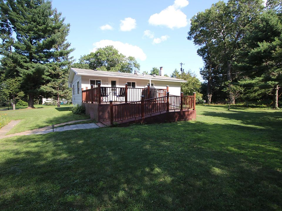 Act FAST ! Super affordable single level home on over 1 Acre with a 2 car detached garage and association beach access to Fawn Lake. 2 Bedroom 1 bath on the main. Brand new boiler in home along and a wood burning furnace. Newer kitchen. Large maintenance free deck. Huge private corner lot that possibly could be divided. Quiet street. Handicap ramp off deck. Plenty of room here. Relocation makes this one available so act fast.