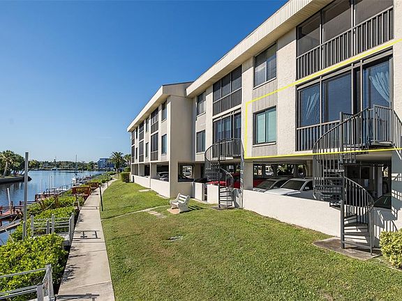 Welcome to your slice of paradise in this stunning 2-bedroom, 2-bath Gulf-front condo offering spectacular sunsets and sunrises, a lighted boardwalk, and tranquil water views right from your 2nd-floor unit with very easy access down the spiral staircase out the back of the home. Featuring a spacious split-bedroom floor plan with 1,025 sq. ft. of living space plus an extra sitting area right over the water. This home blends comfort and coastal charm. Enjoy morning coffee or evening cocktails while overlooking the sparkling Gulf waters — every day feels like a vacation! Located in a beautifully landscaped, gated waterfront community, you’ll enjoy resort-style amenities including: *Heated swimming pools with cabanas *Boat ramp and available dock access (for rent or purchase when available) *Putting green, tennis courts and pickleball *Clubhouse with ping pong, billiards, kitchen, library, and fitness area * 24-hour gatehouse security *RV/boat storage area (available for an additional fee) This unit also includes an assigned parking space conveniently located close to the elevator and a private storage locker under the building. Experience the best of Florida’s waterfront lifestyle — relax, unwind, and discover your place in paradise!