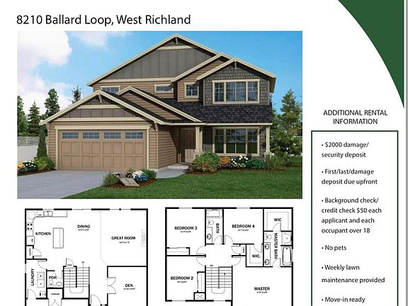 This beautiful home is just over one-year-old! It has a large great room concept main floor with a open kitchen, large dining area and a large carpeted living room with the laundry room, half bath and an office on the main floor. This beautiful home has a large primary suite, A three car garage and a fenced backyard. This home is available now! Renter is responsible for gas, water, sewer, electricity and irrigation(all utilities serving the property. Minimum one year lease term. First month and damage deposit due upfront before move-in and all applicants and anyone living in the house over 18 years old must pass a background and credit check. All utilities must be in tenants name and verified by the property management company prior to move-in. NO PETS. No Smoking in the home. Prior tenant screening reports will not be accepted. Each applicant and individual that is going to live in the home must pay $50 each for the application and background check. Weekly lawn mowing is included between 1st of May and 1st of October(depending on weather). The neighborhood has an Active HOA which renters must follow and agree to in advance. There's also a $250 cleaning fee due up front with the deposit and first months rent.