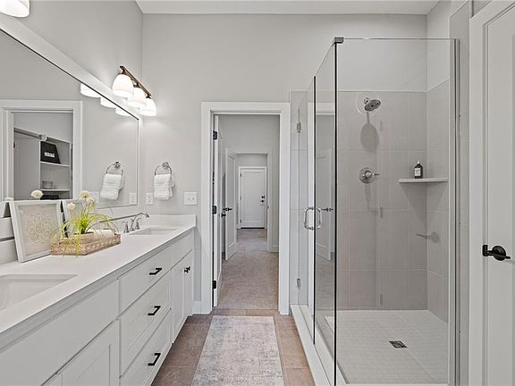 Oversized covered deckGenerous lotElegant kitchen hoodDouble vanityQuartz countertops throughout homeLinen closet