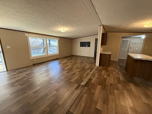 Wildlife often visitingSpacious kitchenSmall moving creekCreek behind the homeLaminate throughoutCovered back porch