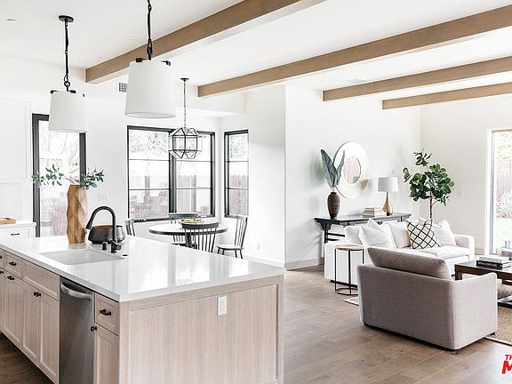 Brand New 2019 Modern Spanish Construction from Blu and Whites Homes! No expense was spared in this breathtakingly beautiful new home, which boasts 10 1/2 ft ceilings and wood beams throughout. Through the wide entry is an en-suite bedroom, followed by a powder room with handmade star and cross tiles. Step down to an expansive eat-in kitchen and great room, which leads to the grassy yard through 12 ft wide La Cantina panoramic doors. A separate dining room opens to a pergola-covered dining lounge with a cozy double-sided fireplace. Upstairs, find an additional 4 bedrooms and 3 bathrooms. The large master bedroom suite opens to a Saltillo tile deck with expansive West-facing views. Add'l upgrades include Lincoln clad windows and doors, wide plank hardwood floors throughout, custom cabinets and woodwork, dual HVAC, full clay tile roof, and Ring alarm system and doorbell. Ready to issue pool permits avail. In a central Silicon Beach location, special homes like this do not come up often.