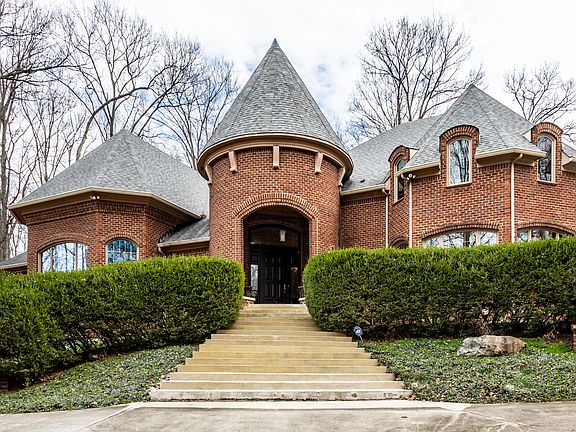 This stunning custom home is situated on a 1.49-acre wooded lot with mature trees in the charming Traders Hollow neighborhood. The spacious and exceptional home is located on a cul-de-sac in a quiet area, providing a private and tranquil setting. The house is located on a raised hillside, offering breathtaking views both inside and out. Throughout the interior, you will find high ceilings, upscale finishes, fresh paint, and many updates. The large, functional kitchen is equipped with custom cabinets, center island, granite counters, prep sink, Subzero refrigerator, Jenn-Air stainless steel dual range with 4 burners and a griddle, dishwasher, and warming drawer. You will love the exquisite woodwork and detail in the den/library (including the hidden room), and the living room with its 20 ft ceilings, built-ins, and fireplace is a great place to entertain. The main floor primary suite has a tray ceiling with crown molding, built-ins, and a fireplace. The primary bathroom features his and her vanities, a full shower with dual shower heads, a large whirlpool tub, and a large customized walk-in closet/dressing room. The upper level has two oversized bedrooms with ensuite bathrooms and large closets. Additionally, the finished space above the garage adds two more bedrooms, a full bath, and a multi-purpose room with a full kitchen. The beautifully landscaped wooded lot provides a serene atmosphere, while the swimming pool and hot tub offer the perfect spot to relax and unwind. The property also features a huge 4-bay garage, providing ample space for cars and storage. Great location with easy access to downtown, north Meridian, Eagle Creek Park, Zionsville, and private schools.