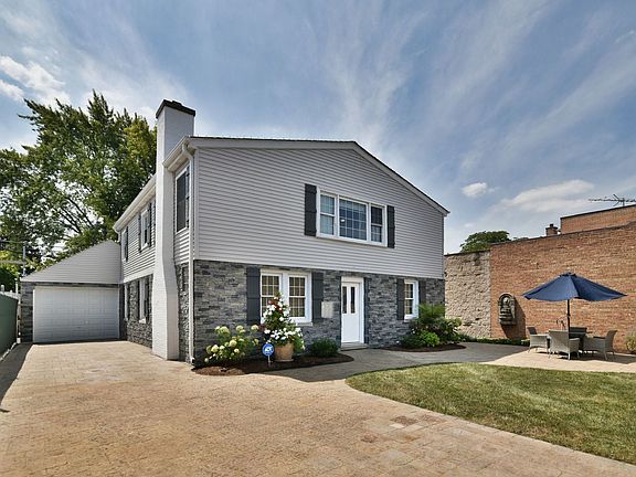 No Expense Spared - Fully Renovated Two-Unit Residence with Commercial Zoning and a Contractor's Dream Garage! Experience unmatched quality and attention to detail in this extensively renovated and truly unique 2-unit property! Newly constructed 2nd floor-roof line and dormers! Situated on an oversized 50' x 125' professionally landscaped lot with a deep setback and commercial zoning, this property offers versatility and curb appeal rarely found. Each unit features its own private entrance leading to a spacious 3-bedroom, 1.5-bath layout designed for today's modern lifestyle with the feel of luxury condo-like living. Enjoy open-concept kitchens with granite countertops, large islands, and stainless steel appliances, complemented by new baths with custom tile work, durable LVP flooring, recessed lighting, in-unit laundry, and central A/C. The first-floor unit features a cozy wood-burning fireplace and private brick patio, while the second-floor unit boasts a modern electric fireplace, vaulted ceilings, and a private deck-perfect for outdoor living. The property shines from every angle, with a gated paver-brick driveway, secure fenced yard, and commercial-grade garage at the rear to increase income potential-complete with heat, water, bathroom facilities, loft storage and dual oversized overhead doors for convenient drive-through alley access. Located in a prime area-walking distance to schools, shopping, Metra, and just minutes from O'Hare Airport-this property is ideal for owner-occupants, investors, or mixed-use potential.