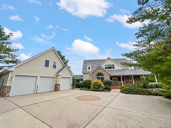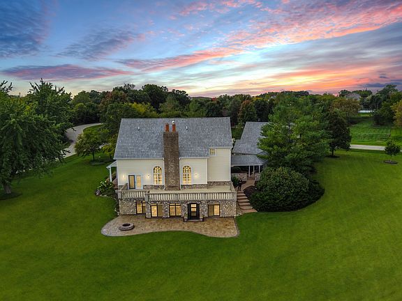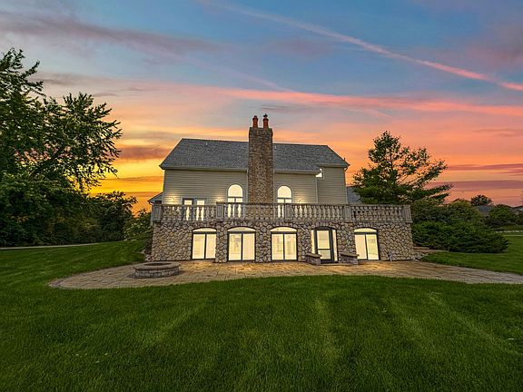 Stunning. Amazing and Beautiful home nestled in a serene, nature-rich 2.1 Acre setting. This exceptional home combines fine craftsmanship with timeless quality. When you walk in and there is a living room to the right that could be converted to a great home office with french doors. You'll love the family room with 20 foot ceilings that is centered around a massive striking stone fireplace that commands attention. Overlooking the family room is your kitchen with Cherrywood cabinets, Quartz Toppers, Double crown, Splash, Recessed lighting, a Breakfast bar and more. Your 1st floor Master Suite is a rare find and can convert to an in-law arrangement too. Rich Brazilian Cherry flooring flows gracefully beneath your feet throughout. The 6" baseboards and elegant crown molding frame each room with the feel of old world European carpenters with 9-foot ceilings and a plethora of high-end finishes exuding quality and sophistication. You can access your super-sized veranda with concrete Pillars from the kitchen, master suite and Stairs outside. It overlooks your entire estate. There's a huge stone patio below with a professionally designed fire pit. From there you have access to the huge bonus closed in space under the veranda with 4 arched double windows and access door to your walk out basement. The basement has a rec room with a brick fireplace, a game room, wet bar, home theater, extra bedroom with full bathroom and lots of additional living space. There's a heated 3-4 car garage, 30' X 28', with a workshop and storage area. Also, above the garage is a bonus, fully equipped Guest Apartment, Private Office, Studio, or another In-law possibility with a full bathroom, cool kitchen, breakfast bar, balcony, heat, and A/C. It's connected to the home by a covered breezeway, providing flexible living arrangements. The greenhouse you've always wanted with a garden area that has 100% full Sun. Also a watering system, electricity and raised garden beds... For those who love recreation and exploration, this location offers proximity to a wealth of activities, from the Richardson Corn Maze to the Chain o' Lake State Park, Wilmot Ski Resort, and the excitement of Country Thunder. Nearby towns such as Richmond and Antioch beckon with small-town antiquing, while Lake Geneva and the Volo Auto Museum provide further adventures. The Fox Lake/River Resort area boasts picturesque lakeside dining, local bars, grills, and charming cafes, making this residence a gateway to a world of enjoyment.