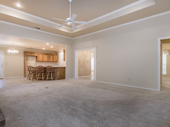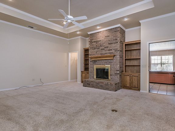 Very well maintained one owner home located close to schools. HVAC with humidity control 2019. 50 gallon Rheem water heater 2016. Large living room with fireplace. Bonus room with a variety of uses. Second patio off of kitchen dining area. Kitchen has tons of cabinet space and counter area. Separate formal dining. Nice sized bedrooms. Large utility room with sink . Neutral colors through out. Over sized 3 car garage. Storage building, sprinklers front and back. Hot tub.