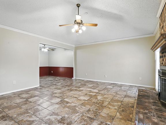 Brick fireplaceWood fenceLarge backyardStainless steel appliancesCovered patioWalk in closetsCeiling fan