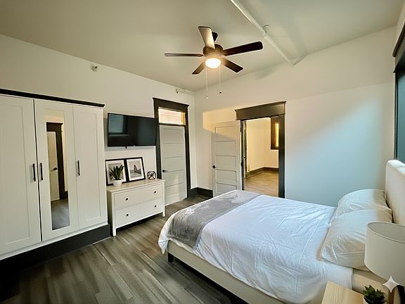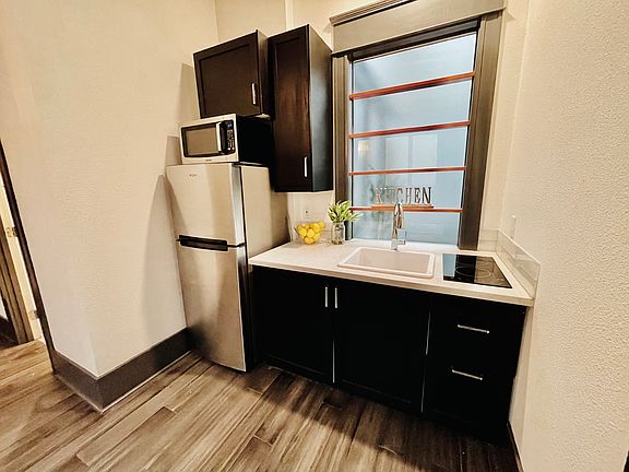 - FULLY FURNISHED.......stocked kitchenette w 2 burner cooktop, fridge, convection micro, dishwasher; bedroom w queen bed, linens, closet, dresser, smart TV; Living with loveseat, coffee table, bookshelf, smart TV, bathroom with shower, linens