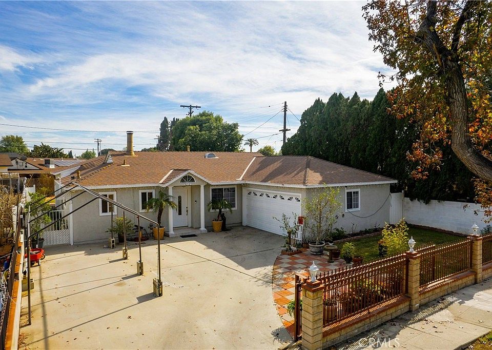Comfortable residential neighborhood nestled in Reseda. Beautiful single-story home. It offers a prime location with four bedrooms, two bathrooms, and a long country driveway for potential RV access or parking cars. The kitchen includes a stove, microwave oven, and refrigerator are part of the sale. You will appreciate and enjoy a spacious living room with a cozy fireplace. Wood laminate flooring, crown molding throughout. Windows with unique blinds. A laundry area with included washer and dryer. Central heat and Air conditioning. Expansive backyard with grassy landscaping and privacy fencing. Solar panel, two-car garage, with potential ADU conversion. Bring your visions. The property is in move-in condition. All this sits on a large 7216 square foot lot. Close to schools, Minutes away from CSUN. This property could become your dream home.