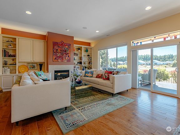 Beautiful Active Adult Community of Jubilee! You will appreciate all the high end upgrades in this 2,347 sq ft Canterwood floor plan with 2 bedrooms, 2.50 baths, den with french doors and built-ins. Relax in front of the living room gas fireplace or on the covered deck overlooking the golf course. Enjoy cooking in this gourmet kitchen with double oven, Bosch appliances, granite counter tops, vegetable sink in island, slide outs in most kitchen cabinets, gas cooking and microwave. Two car garage with storage units and freezer. Enjoy the many amenities Jubilee has to offer including Lodge with indoor swimming pool and exercise room, private trail to Puget Sound and tennis courts.