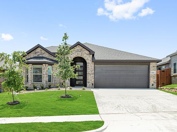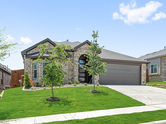 NEVER LIVED NEW HOME! Move-In Ready NOW! Welcome home to one of Bloomfield's most popular cottages from our Elements series. With modern finishes, wide hallways, and large windows inviting abundant sunlight, this cozy home is anything but ordinary. The all-brick elevation and charming bay window on the front add to its curb appeal, while inside, scratch-resistant Laminate Wood flooring extends throughout the common areas, combining style with easy upkeep. Energy-efficient features, including a tankless water heater, pair perfectly with exotic Quartz countertops for modern convenience. The heart of the home is the sleek kitchen, where a wall of flat-panel cabinets, a glass and stainless steel vent hood, a coffee bar station, a massive pantry, and a large island with seating enhance both style and function. Adjacent, the dining nook offers a cozy window seat, perfect for enjoying a morning coffee. The Primary Suite features a private bath with a double sink vanity, a shower, and a tub, offering a relaxing retreat. Additional highlights include blinds, an upgraded 8' front door, a covered patio, privacy fencing, a sprinkler system, and an interior lot with a full-sized 2-car garage. Visit Godley Ranch to learn more about this exceptional home!