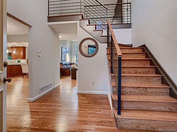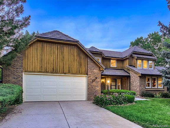 Stunning, Highly Upgraded Estate on an Expansive Lot with the Finished Basement of Your Dreams! You will fall in love with this home the moment you see its outstanding curb appeal, with a grand brick facade, oversized 2.5 car garage, and lush, mature landscaping. Inside you are greeting by a vaulted entry foyer with spectacular metal and wood railings and hardwood stairs. You will notice the high level of updating throughout the home right away, no space has been left untouched with new paint, carpet, and outstanding high-end designer features. Large picture windows drench the space in natural light and on-trend wide plank hardwood flooring makes every room feel luxurious. The main floor formal study with barn doors is a perfect, private retreat and sizable enough to make an office for two. The rare main floor bedroom/full bathroom suite is very convenient. The family room is warm and welcoming with a two-story wall of windows, skylights, feature brick wall, gas fireplace, and wet bar. The heart of this home is the truly gourmet kitchen that will delight any home or professional chef. The showpiece 48" JennAir commercial grade 6 burner gas range with stainless steel vent hood wows, as do the exotic slab granite counters, highly upgraded cabinetry, and sunny eat-in nook. Upstairs the master suite is fit for a spa, with a lovely window seat overlooking the front yard, slab granite counters, heated floors, and a steam shower. The three additional bedrooms are very spacious and have full updated bath access. The basement has been lovingly finished with a billiards/game room, second family room or home theater space, very spacious bedroom, and full bathroom suite. You are walking distance to Cook Creek Swimming Pool, Sweetwater Park, The Lone Tree Hub, Civic Center, and Library, and with extremely close proximity to Park Meadows Mall, endless shopping, dining, and entertainment opportunities and all that the Denver Metro Area has to offer. Visit today and fall in love!