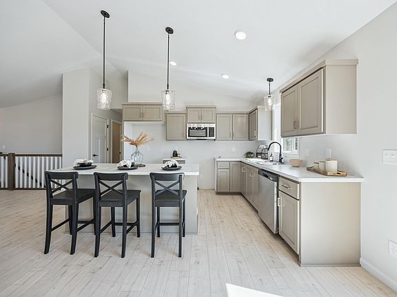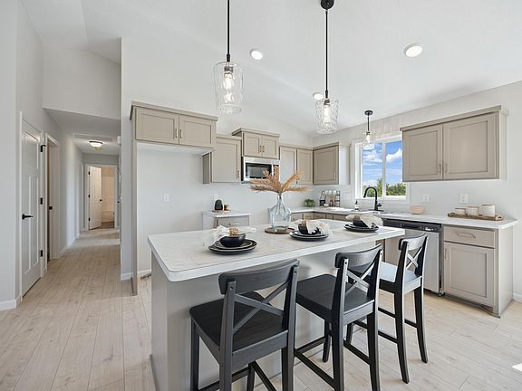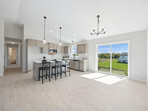 New construction home in Clear Lake! This beautifully built rambler by local builder Heartland Homes offers quality craftsmanship and thoughtful design with 3 bedrooms, 2 bathrooms, and a 4-stall garage with a concrete driveway! Step inside from the covered front porch to discover a front entry with built-in bench, Sherwin Williams Drift of Mist throughout and an open concept layout! The kitchen features durable laminate countertops, a center island, and poplar cabinets with black hardware and soft close drawers. The spacious primary suite includes a private ¾ bath with marble countertops and a walk in closet. All three bedrooms are conveniently located on the main level, along with a main level laundry room. The full walkout lower level is unfinished and awaits your finishing touches. Full yard sod! Just beautiful!
