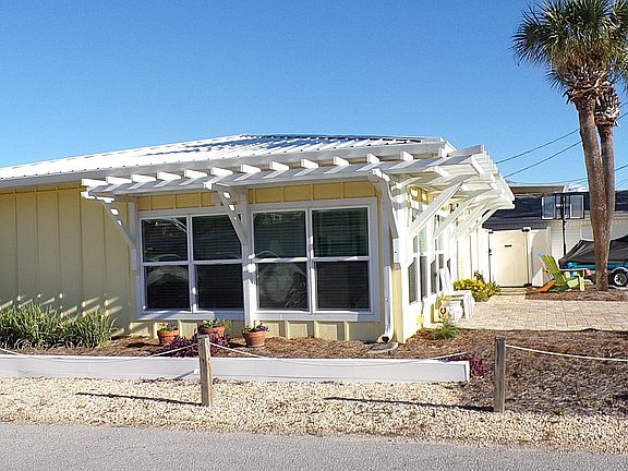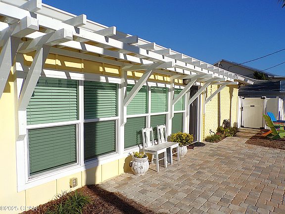 LOCATION IS EVERYTHING! Home is across the street from Beachwalk 19. You can be on the sand in one minute from the time you leave the driveway. The only thing that would be better is to be Gulf front and that would cost $Millions more. This home is in a very upscale area with many large gulf front houses within a block. This beautiful home was completely redone two years ago. All of the ceilings are shiplap and all of the flooring is LVP. Metal roof was done in 2019. There are gutters around the whole house. The front of the house has a custom arbor that adds tremendous eye appeal. It is beautifully decorated and rental ready. Even though it has been a private residence, most of the furniture stays. It is on a corner lot with plenty of parking on the oversized stone paver driveway. The stone pavers are on both sides of the house leading to the large outdoor deck around the pool. There are outdoor tables and chairs that make for a great place to hang out. The heated swim spa is great for year round enjoyment. Half of pool is configured like a hot tub with seats and jets and half is like a pool. A new AC unit was installed earlier this year. In addition each bedroom has portable AC units so even in the hottest part of the summer, the bedrooms are more than cool. The open family room and kitchen area make for a great gathering place. There is a granite counter bar, that can seat at least 9, around the kitchen as well as a large table that can seat at least 10. There is a large screen TV in the family room as well as TVs in 4 of the bedrooms. One of the bedrooms is currently used as an office but would normally be used as a bedroom. The current bed configuration sleeps 16 but can easily sleep 18. All of the bathrooms have sliding glass doors with new tile around the whole shower. The hall bath has a new tub with tile around it along with the sliding glass door. The master suite has an extra large shower. The outdoor shower has cold and hot water. There are numerous hooks in each bathroom as well as around the outside shower to hold towels and swim suits. Everything in this house has been completely redone. The separate laundry room has full size stackable stainless steel washer and dryer with amble storage shelves. The laundry room has an entrance directly from the pool area to manage all of the wet swim suits and towels. The bunk bedroom has sturdy large built in wood bunks.