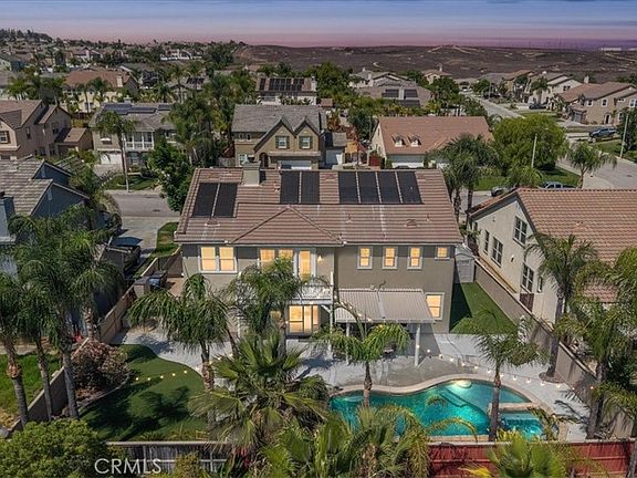 Your private resort awaits...luxury living, a backyard paradise, and energy savings all in one stunning Orangecrest home! This 5-bedroom, 3.5-bath beauty features a downstairs bedroom and half bath, newer carpet and laminate flooring, and an elegant wrought iron and wood double staircase leading to a versatile teen study/library. One of the three upstairs guest bedrooms boasts its own full bath and a charming front facing balcony.