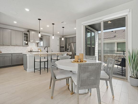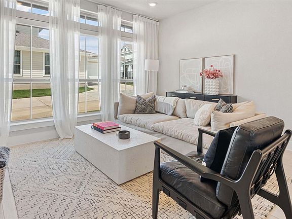 Nestled in the serene community of Easton Park, this impeccably maintained 2-story residence is just a short stroll from the new Skyline Park! The home boasts refreshed cabinet hardware, custom window coverings, and hardwired Sonos-integrated speakers. The main level features an open floor plan with a combined living and dining area, plus a bedroom and full bathroom. Upstairs you will have the primary bedroom and an additional bedroom with an attached bathroom. Outside, the fenced backyard offers a covered patio, perfect for relaxation or entertaining. Easton Park's amenities include a fitness center, dog park, pool and splash pad, parks, and an amenity center. With easy access to shopping, dining, outdoor recreation, and the airport, this home is ideal for those seeking both convenience and comfort in their daily lives.