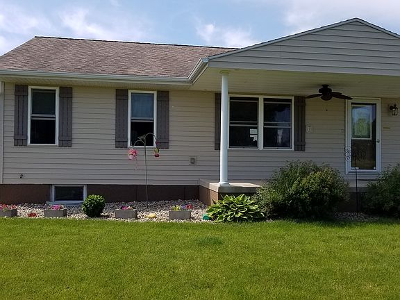 Looking for a quiet country home on 1.5 acres? A home with easy to maintain landscaping/yard so you can enjoy more time sitting on your 8'x18' covered porch with ceiling fan or grilling out back on your 20'x16' deck? Look no further!! The home was built by the previous owner in 2008 with efficiency in mind. He installed a High Efficiency gas furnace and built the home with an open concept floor plan to ensure better heating of the living space. He also insulated the interior walls of the 2nd & 3rd Bedrooms and the 2nd full bath that they share so if your not using them you could close the doors and save money in heating them. These extra steps he put into the home have proven to save us money as we have lived here the past 10 years and I'm sure they can help you save too. The (rented) 500 gallon LP gas tank supplies gas to the following appliances HE furnace, Stove/oven, Dryer and ventless wall heaters in the partially finished basement and finished/insulated garage. With our heat settings in the winter of 70-72 and all the appliances listed above (minus the heater in garage) using LP gas we only went through 1 tank per year at an average cost of $400-650 per fill depending on gas price per gallon and time of year we filled it. Electric bills ran an average of $100-$150 a month. Good Deal Huh?? The homes kitchen has ample cabinets including a center island with pull out shelf style drawers plus regular drawers (includes 3 bar stools) and a deep shelf walk in pantry. All stainless steel appliances will stay with the home. The dining/kitchen/hallway and bathrooms have laminate flooring and the living room and all bedrooms have Berber carpet. The master bedroom (17x12) has an adjoining full bath with a jetted tub and large linen closet. You can access the walk in closet from either the bedroom or bathroom. The 2nd (13'6"x12') and 3rd (12'x13') bedroom and 2nd full bath are on the opposite end of the house and have great closets with organizer systems in them. The half bath and laundry room/cleaning closet are off of the hallway that leads to the garage. The garage is a 3+ car 896 sq. ft. fully insulated and drywall finished garage that has nice wood cabinets in 3 of the four corners and between the front doors. It has above garage door openers w/remotes. You can access the homes full attic by a steel fold away ladder system in the garage. The home has 2 sheds on the property for more outdoor storage needs. The full basement is partially finished (no carpet or ceiling tiles) with 2 rooms petitioned off 1 is being used as storage and will include the storage shelves, it also contains the sump pump, sink, electric water heater, HE Furnace, water pressure tank (new 6/2019) and the rented soft water system. The other was used as a playroom for our kids at one time and it does have carpet. You can access the basement from a door in the kitchen or from an outside door off of the back deck. The basement is insulated (minus the storage room) and electric is run and usable and there are lights in the ceiling. A heavy textured wall board has been installed and has been painted. The heat for the basement is supplied by a ventless gas wall heater and if you want it to heat the whole basement just open all doors and it will heat the basement very efficiently.