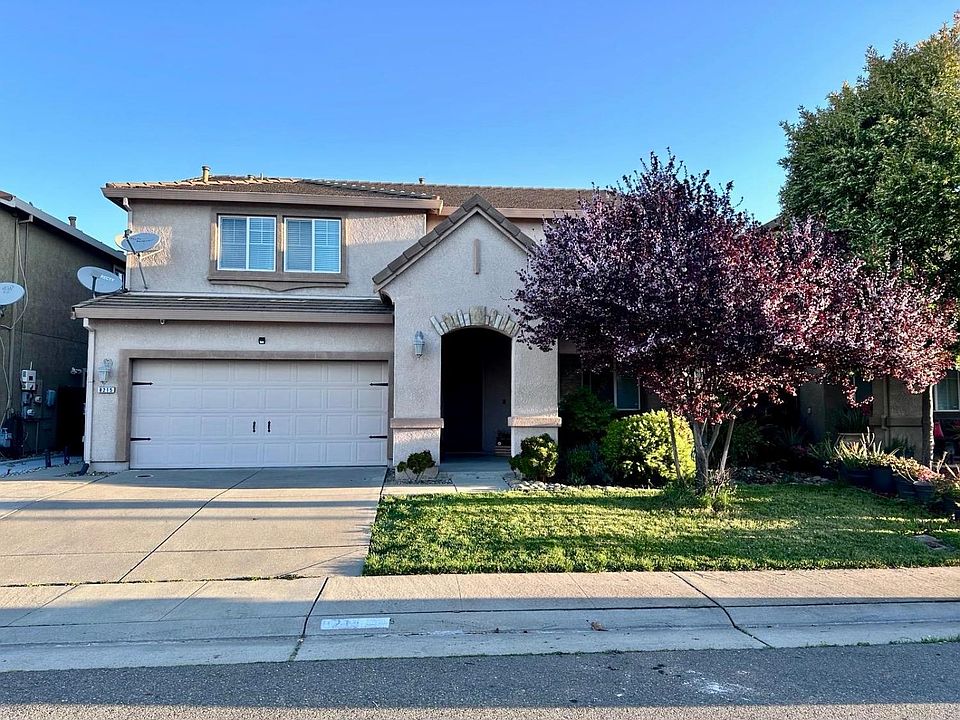 This beautiful 2 story home at 8215 Deloach Way has been very well taken care of. It has a Jack & Jill bathroom. From the main entry you'll step right into a separated living room with high vaulted ceiling. This 2,571 sqft offers 4 bedroom, 3 full baths. A bedroom with full bath downstairs are perfect for eldery parents or guests. The AC unit has been replaced in 2022. The kitchen island and counters have been updated to quartz in summer of 2023 with new backsplash. Brand new carpet last month in all bedrooms and closets. Garage door opener has built in MyQ for remote access. Backyard comes with shed for storage.