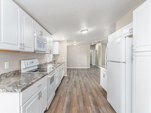 Are you looking for a super large shop/garage, fenced oversized lot, updated 3 bedroom and 2 bathroom home? This is it! This home also features; Newer kitchen with lots of storage and counter top space, cozy breakfast nook, vaulted ceilings, formal dining area, newer flooring throughout, Master Bath features walk- in shower, complete appliance package includes washer and dryer, main floor laundry, additional outside storage with newer "she/he" shed, large back yard concrete patio area, large 1/3 acre lot, RV parking, dog run and garden space.