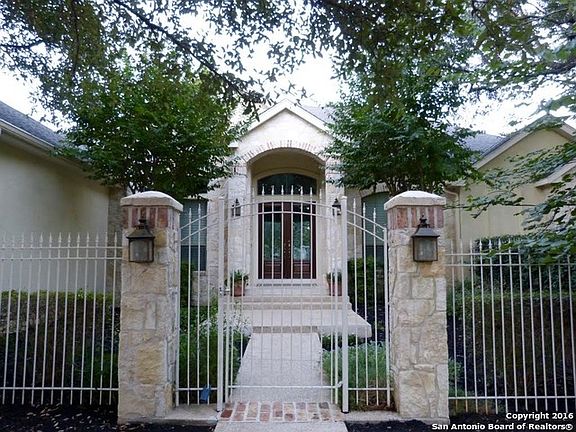 Private 4 bedroom 3.5 bath, stucco rock 1 story home located on a cul de sac. Has inner and outer wrought iron fenced backyard. Backyard has an absolutely breathtaking pool and surroundings. Granite, built ins, shutters, wood floors, walk in pantry, kitchen cabinets to the ceiling, extensive crown molding in the formal areas and study. The home has a 3 car garage, tiled porches and mature trees.