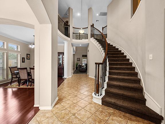 Welcome home to 8215 Paddle Rock Ln! Situated on a premium oversized corner lot, this 5-bedroom, 4-bath impressive home offers nearly 4,500 sq. ft. of light-filled living space with an open-concept layout perfect for entertaining. The interior features soaring ceilings, a fireplace-centered family room, formal dining, and a gourmet kitchen. The downstairs primary retreat ensures privacy with the large bathroom and closet space. Upstairs, family and friends will enjoy the large game room/billiards room alongside the oversized media room. This floor plan is unique to this community and was thoughtfully designed to maximize storage and functionality. The brick exterior, sprawling back yard and recently updated back patio speak for themselves. There is plenty of room for a pool to be added in the future. River Run at the Brazos is conveniently centrally located in this fast-growing, amenity rich community!