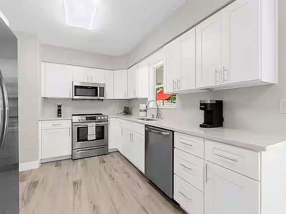 Quartz countertopsLarge covered back porchSpacious fully fenced backyardUpdated kitchenBrand-new stainless appliancesShaker cabinetsNew paver driveway