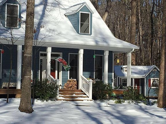 Find sanctuary in this bright airy cheerful 3 Bedroom/2 Bathroom home on 2.49 acres. Peaceful and lush outside with nearly year-round living on the magnificent wrap-around porch. First floor master with 2 additional bedrooms upstairs. Brand new 50 year 5V metal roof, gleaming white oak floors throughout. Three out buildings: two-story barn with skylights, playhouse/guest house and tractor shed. Chapel Hill neighbors yet Alamance County taxes. Come see why this house was showcased by Pottery Barn.