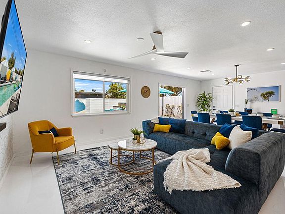 This Short Term Rental Property has every possible upgrade you could want to entertain guests as an Airbnb or vacation home! Welcome to the ''Blue Cactus House'', where you'll understand it's name right as you approach the front door. This 5 bedroom, 3 bathroom home is situated on a large corner lot, ideal for guests enjoying themselves into the night. Every detail in the home has been designed to provide the most memorable Airbnb or VRBO experience, whether it's the colorful wall murals, the waterfall island in the open floorplan kitchen, or the Junior ADU (JADU) with separate kitchen and sleeping space. And that's not even the best part, because wait 'til you see the backyard. The recently built and newly plastered pool is framed perfectly by a state-of-the-art entertainment system and built-in grill space. Soak up the stars in the hot tub or cozy up next to the firepit, the options to enjoy yourself are endless! Property is being sold fully-furnished, turnkey, and has generated over $100k in revenue in the past 24 months, and Coachella is already SOLD OUT for 2026t. Priced to sell quickly, this home is a 'cash-cow' and the results speak for themselves.