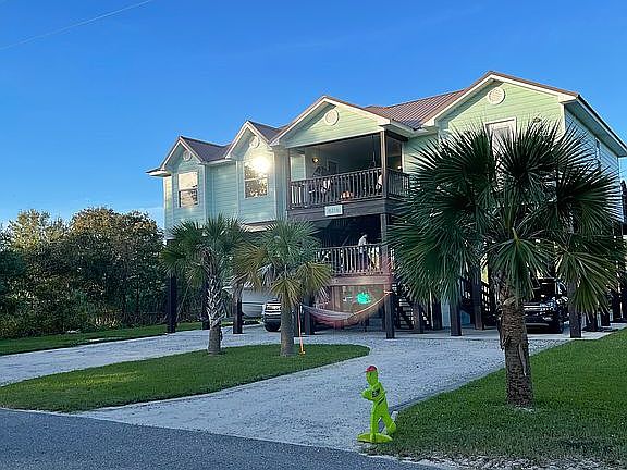 Welcome to your slice of paradise! This beautiful raised beach house offers the best of both worlds — peaceful bayou views and deeded access to the beach just steps away. Enjoy breathtaking sunsets from the spacious covered deck or relax in the hot tub overlooking the lush coastal landscape.