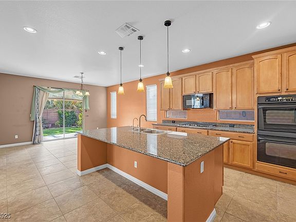 Welcome to this stunning 4-bedroom residence located within the prestigious gated Waterfall community in North Las Vegas. This sought-after floor plan includes a private casita with its own bathroom and separate entrance from the gated courtyard, offering an ideal space for guests or a home office. The gourmet kitchen is a chef's dream, featuring built-in double ovens, a 5-burner cooktop, granite countertops, and ample cabinetry, making it perfect for hosting gatherings. The kitchen seamlessly flows into the family room, illuminated by large windows that invite an abundance of natural light. Residents of the Waterfall community enjoy access to exceptional amenities, including four private parks, a swimming pool, jacuzzi, fitness center, banquet hall, aqua splash zone, and a children's rock-climbing wall. Don't miss the opportunity to own this gem in a vibrant community. Schedule your tour today to experience firsthand the unparalleled blend of style and comfort this home offers.