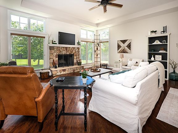 Open House Friday 5/31 5pm-7pm Serenity awaits!! This 4 bedroom 5 bath home situated on 7.5 acres is where you will want to call home. It will feel like home as you drive up the driveway looking at the wildlife that may be crossing your path. The pond with private sandy beach welcomes you with the end of the day sunsets that erases all your worries. Inside you will find tons of natural light and calm peaceful colors that welcome you home. The kitchen has been updated with white custom cabinetry, new vent hood and gas stove/oven. Large center island with concrete counter connects the eat in kitchen and great room. The great room offers plenty of space with a stone wood burning fireplace and extra large windows. The sunroom off the kitchen overlooks the large pond and expansive yard. The primary bedroom is situated on the main floor and offers his and her closet space. The new tiled shower, dual sinks, and soaking tub are sure to impress. The upstairs offers 2 large bedrooms with walk in closets and private bathrooms. The craft room/nursery offers nice storage area, and natural light. The upstairs loft is just another great feature offered. The lower level hosts another large bedroom with full bath. The family room and bar area complete this space making it perfect for entertaining. The storage in this home is plenty, with 2 large storage rooms. One was being used for the avid gardener and his starter plants. Other updates include new geothermal system(4yrs) 2 New water heaters just installed this year, Come take a look and fall in love.