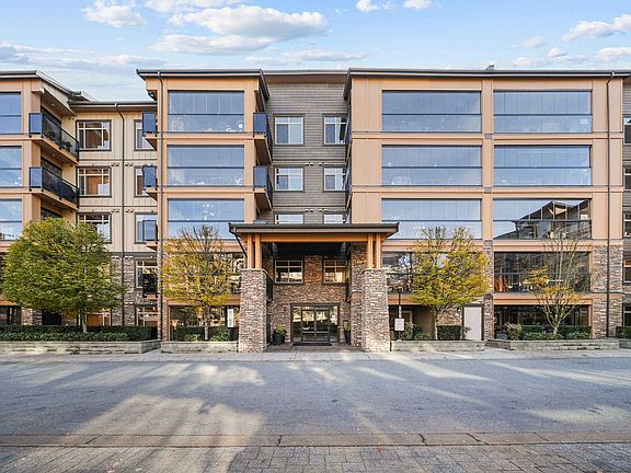 Stunning 1,602 sq.ft. ground floor condo with large enclosed solarium! The sought-after Executive M2 Plan offers the best layout for comfort and functionality. Open concept design ideal for downsizers or families! Gourmet kitchen with granite counters, solid wood cabinetry, pantry, gas range and S/S appliances. Features 9 ft ceilings and A/C throughout. Two primary-style bedrooms on opposite ends for privacy. Bathrooms feature heated floors, fog-free mirrors and double sinks. Includes 3rd bedroom plus spacious den (or 4th bedroom). Enclosed solarium with retractable glass panels and gas BBQ hookup for year-round use. Direct outdoor access—perfect for pet owners & steps to the dog park! Two parking stalls (1 oversized) & large roll-up storage locker. Unbeatable Willoughby Heights location!