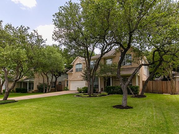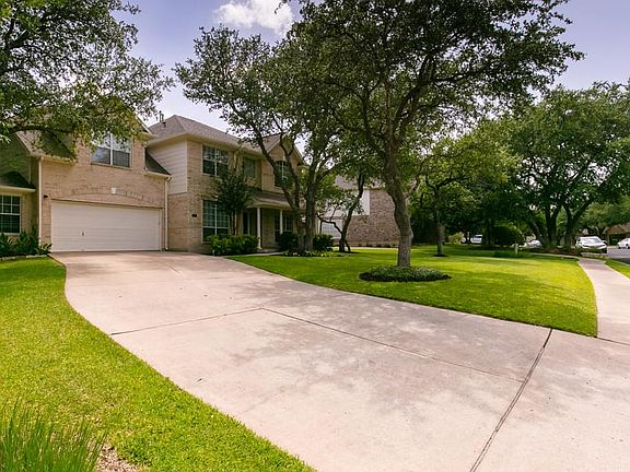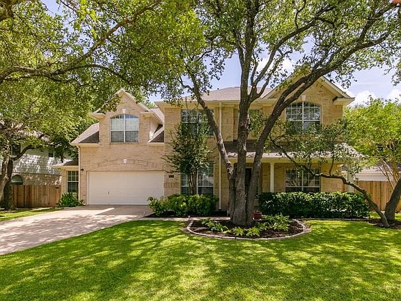 Fantastic curb appeal! This 4 bedroom, 3 bath home with 3032 square feet is surrounded by mature trees and lush landscaping! Gorgeous details are featured such as arched doorways, niches for artwork and media, French doors, crown molding, and a custom glass front door. The living room is spacious with huge windows, entertainment center built-ins, fireplace with glass tile backsplash, and an open layout to the kitchen and dining room space. The stunning updated kitchen includes a center island, custom cabinets, white subway tile backsplash, honed granite counters, and stainless steel appliances. There is very large flex space upstairs. All of the bedrooms including the en suite master are also expansive with soaring ceilings. The master bath offers granite counters, a granite vanity/desk area, garden tub, and walk-in shower. Updated laminate floors throughout. Central AC. Separate laundry room. Newer roof. The garage has great storage space and its walls and floor have just been re-painted. There is a pool, park, and water/play area for the kids. HOA $36.67/mo and includes amenities, common areas, parks, pools, trails, maintenance, and community center. The elementary school and pool are within walking distance, and there are trails that lead to the Brushy Creek Trail System. Quick access to I 35, Parmer and Toll 45. This is a lovely and special home! Make it yours for years to come. Schedule a showing with REX today!