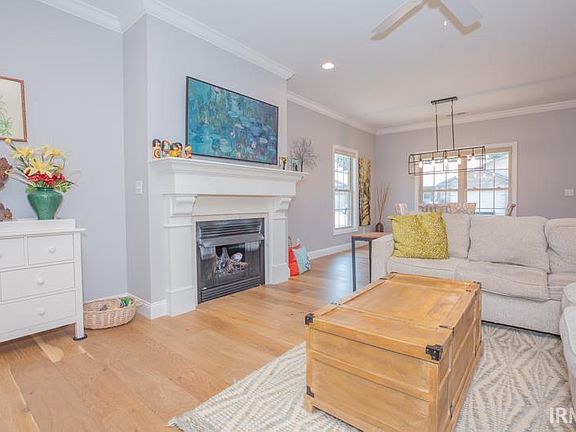 This Magnolia Place end unit offers multiple upgrades, including a screened and covered back patio with full paving and screened in porch. There is also ample yard area equipped with sprinklers. The kitchen features an oversized island with custom pull-out drawers and USB ports. The countertops are quartz and coordinate with the backsplash. The primary living spaces feature hardwood floors, and the fireplace has been enhanced with upgrades. Upstairs is a fourth bedroom or bonus room with a full bath, two large windows for natural light, a walk-in closet, and a walk-in storage room. Additionally, there is a full brick workshop attached to the home. Both the garage and workshop have epoxy floor finishes. The HOA fee is $150 per year and covers main entrance maintenance, landscaping, lighting & snow removal