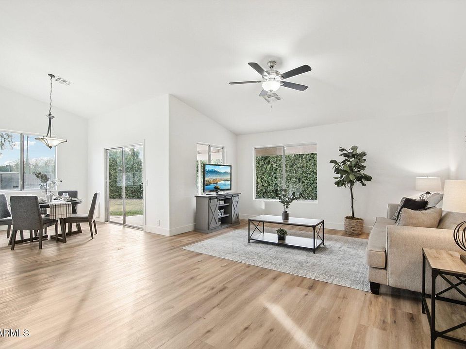 Remodeled single story family home with huge cul de sac lot. This home has all new white shaker cabinets, quartz counters, and black faucets. All new waterproof vinyl flooring throughout the home as well as all new interior paint. The great room has large vaulted ceilings with an open kitchen and dining room. Master bedroom also has vaulted ceilings and a large walk in closet with big bathroom. There are 2 other bedrooms and bathrooms as well. The backyard is huge with a kids play house and extra large covered patio along with a concrete pad for a hot tub. There is an RV gate on the side to fit a large trailer or RV as well. The A/C unit was also just replaced last year, this home is almost all new with all the recent updates and is a must see.