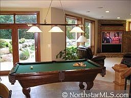 Gorgeous "Green" Rambler nestled in the trees & ponds on a private cul-de-sac lot! All hi-end upgrades & energy efficiency! Geo-Thermal infloor heat,insulated concrete walls & 3-pane windows 6-car gar.,gourmet kit.,charming waterfall!Superbly constructed!