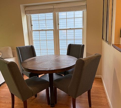 Wood-type floorsEnd unitTownhome styleLarge laundry roomGreat closet spaceCeiling fanPrivate woods