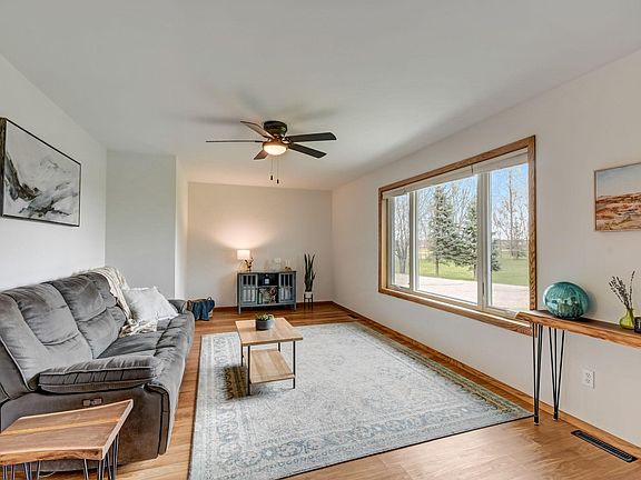 Here is what you've been looking for! This well-cared for 3-bedroom, 2-bathroom home sits on nearly 3-acre lot adorned with a variety of mature trees. Recent cosmetic updates enhance the interior, complementing Renewal by Andersen windows and main floor laundry for modern convenience. Kitchen shines with stainless steel appliances, eat-in dining and patio door access. Lower level has been finished with an additionally expansive storage/workspace beyond that. Enjoy plenty of garage space, including an attached 4-car insulated garage and a detached 2-car garage with concrete and electrical, totaling over 1,700 sq ft. Retreat to the primary bedroom which features dual walk-in closets. This home offers both comfort and sustainability, and let's not forget its convenient location and privacy.
