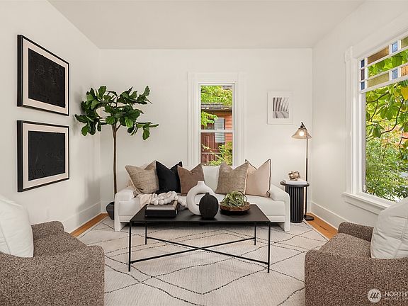 Built in 1893 and reimagined with care, this Victorian home blends historic soul with uncommon craftsmanship. If it looks like wood, it's wood. If it looks like slate, it's slate. Artisan Zellige tile from Morocco, custom MOD cabinetry, live edge shelving, hickory floors, all set below 19th century antique stained glass. No mass-produced materials here, just timeless textures and intentional design. The backyard features a modern deck, lush lawn, and a garage-turned-speakeasy perfect for gathering. All nestled between Capitol Hill and Madrona, with walkability to parks, cafés, and community. Brand new appliances, a new furnace and upgraded electrical panel ensure a seamless living experience. This is a home with nothing to hide.