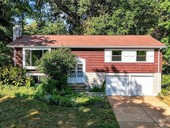 Welcome to this charming split-level home in the sought-after Country Lane Woods subdivision. A spacious, light-filled retreat with an open floor plan, this home is designed for modern living and effortless entertaining. The vaulted living room is a centerpiece, anchored by a cozy wood-burning fireplace that also serves the adjoining dining room. The bright kitchen is both functional and inviting, offering ample counter space and a serene view of the back patio. On the upper level the three generously sized bedrooms provide a private and comfortable escape. The primary suite features an ensuite bathroom and sliding glass doors that open out directly on the serene rear gardens. The partially finished lower level offers flexible space for a rec room, office, or home gym, complemented by a convenient half bath. A 2-car tuck-under garage provides plenty of space for vehicles and extra storage. Outside, a gardener's paradise awaits. The beautifully landscaped side and rear yards will delight you, with the rear patio surrounded by the long-blooming Rose of Sharon (Hibiscus syriacus). Live life to the fullest with neighborhood amenities including a clubhouse, pool, tennis and pickleball courts, a playground, and a BBQ area. The tree-lined neighborhood offers the perfect setting for evening strolls with sidewalks and streetlights. Located in the top-rated Parkway School District and just moments from schools, parks, shopping, and restaurants.