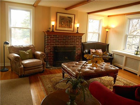 This charming home surrounded by open space and serene gardens with an historical past is a must see! Move in ready with gleaming hardwood floors and bright rooms. First floor living/family room has a fireplace and opens to the dining room and kitchen. In addition, there is a first floor bedroom, full bath and den. Finished basement with full eat-in kitchen, full bath and outside access make a perfect in-law suite, home office or spacious family room. Enter a world of out door living with this large, private backyard containing a pond, greenhouse, pergola and fire pit. Home Warranty included.