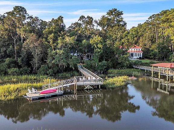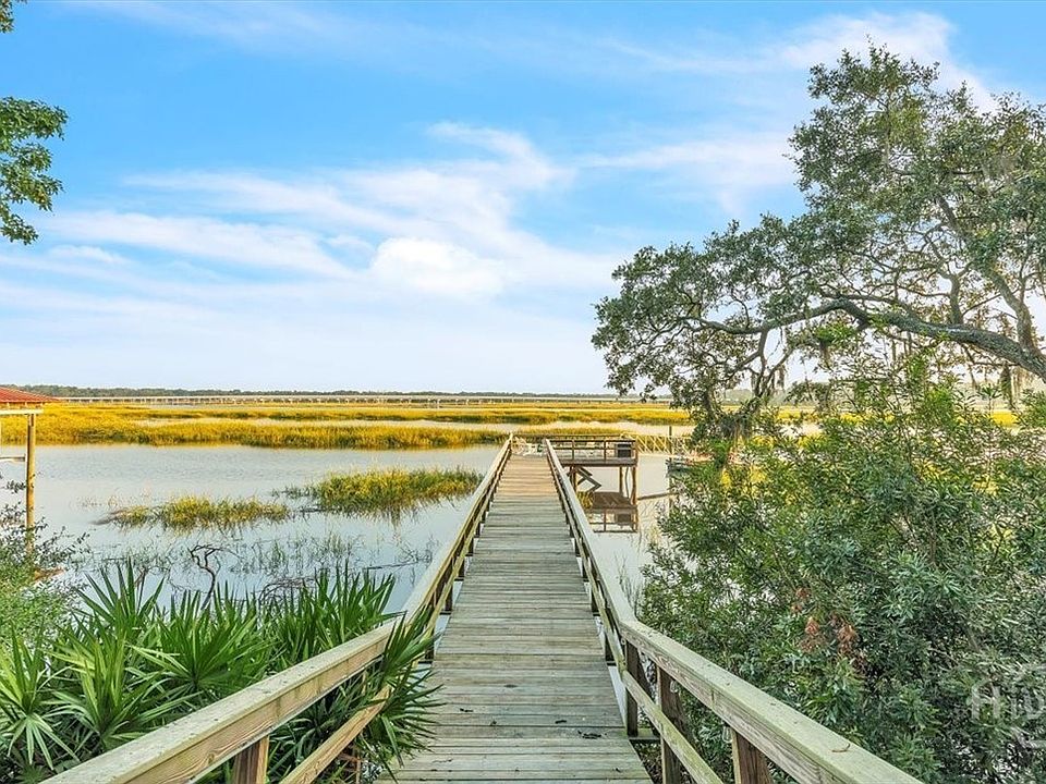 Luxury, waterfront, custom construction located in Historic Vernonburg. 120 feet of frontage on the Vernon River, with your own private dock (with power) and no required flood insurance. Curated, high-end finishes include Bosch appliances, wide plank French oak floors, chefs kitchen with butlers pantry, and whole house generator. Wheelchair accessible, 1 bed/1 bath carriage house above garage with private entrance and elevator. Double sliding doors open to the huge screened porch, offering views of the river, and seamless indoor/outdoor living. The first floor primary suite, home office, and mud/laundry rooms add convenience, while upstairs bedrooms provide room for guests. Suite upstairs could be second primary, with separate sitting room and three closets. The amount of closet space in this home will not disappoint! River views, careful design, and secluded setting create a quiet corner of your own, just 20 minutes to Downtown Savannah and 5 minutes to Savannah Country Day School.