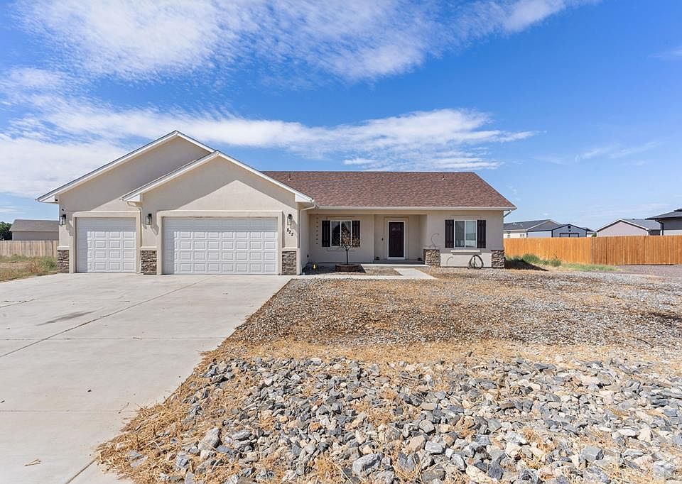 Welcome to 822 E Cabaret Dr in beautiful Pueblo West! This stunning home feels practically brand new and is loaded with elegant upgrades throughout. Sitting on a spacious 0.36-acre lot, you'll love the curb appeal, oversized 3-car garage, and both a charming front porch and a covered back patio—perfect for enjoying those Colorado sunsets. Step inside to an open and airy layout with modern finishes, clean lines, and plenty of natural light. The heart of the home flows seamlessly for everyday living or entertaining. The large master suite is a true retreat, featuring a luxurious walk-in shower, double vanity sinks, and an absolutely massive walk-in closet that will wow you! Whether you're hosting guests or just looking for your own peaceful haven, this home delivers comfort, space, and style in all the right places. Don't miss your chance to own this exceptional property in a quiet and desirable part of Pueblo West.