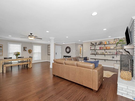 This charming Ranch-Style home has 3 bedrooms and 2-1/2 bathrooms on a large, flat, treed lot with abundant natural light. The open floor plan welcomes you into the home with hardwood floors throughout and a gas log fireplace in the living room. Picture yourself entertaining family and friends around the granite kitchen island, and let the party flow into the large bonus room just beyond the kitchen. Sip your morning coffee on the back deck looking out over the peaceful yard. Located on a quiet, sought-after street near Aldridge Creek Greenway, Jones Valley Parks, and the Valley Hill Country Club Golf Course. Roof 6 years old, HVAC 6 years old, Refrigerator to stay.