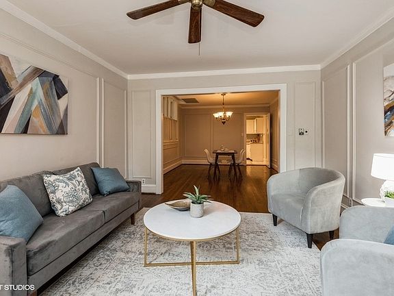 Spacious, airy condo in desirable Stoneleigh Castle, a couple blocks from the L, Metra, the lake, shops, restaurants, & more. Huge windows w/ custom wood shutters, 9' ceilings, lots of architectural features, hardwood flrs, generous-sized rooms & loads of vintage charm. Primary bdrm has walk-in closet. Storage unit & laundry (w/ in-unit option) right out backdoor. LOW taxes & monthly assessment all on quiet, tree-lined residential street. Permit parking in lot behind building and at end of block can be arranged through the city.