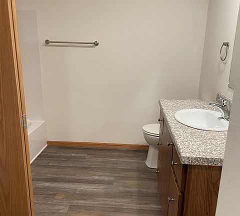 The Greenfield Estates Apartments has a modern 2 bed/2 bath upper that is ready to rent the beginning of September! Greenfield Estates has a modern touch with private entry into your apartment, in-floor radiant heating and a washer and dryer in all units. With custom-made Amish cabinets, the kitchen is sure to win your heart. Included in the monthly rent price is the in-floor heating, attached garage, garbage, and recycling. The location is just minutes away from shopping, dining, and recreational areas.