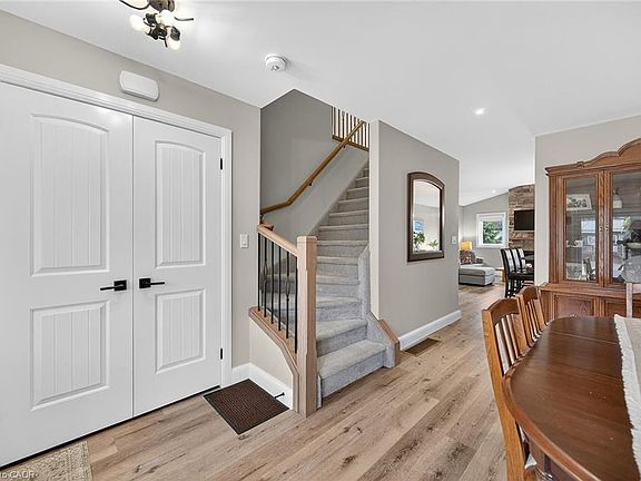 BEAUTIFUL BOER BUILD IN BUSTLING BEACH TOWN PORT DOVER! Just short walk away from the Summer Savvy Lake Erie Downtown destination is this 3+ year old home located amongst other impressively maintained properties. Bright white concrete drive pulls you up to the cozy covered front porch for front row seats to Dover's famous Friday the 13th motorcades. Home opens to a bright showroom dining area with large windows & all the area you need to fit that family table. Follow thru on the Notty Bleached Rustic luxury flooring to a modern open concept entertaining kitchen to living room. Stunning black hardware contrasting the gleaming white cabinets and trim work plus sporting a wet centre breakfast bar island including sink, Alkaline water system & hidden dishwasher. Convenient kitchen work areas are backlit by hidden under cab lighting. In open unison is your showcase living room with vaulted ceiling and from floor to peak Stone Hearth surrounding a toe toasting gas fireplace. Steps away are patio doors to your 15x12 deck over looking your fenced in lavishly landscaped backyard with veggie garden box at the end. To water all these lush things the owner installed a 2,500 gallon cistern to collect rain water for free plant & outside cleaning/watering needs. Sleeping level features 2 generous secondary bedrooms, large main/guest bathroom & to die for Primary Bedroom with his & her closets, large private ensuite oasis + 14x6 balcony for evening private shooting the breeze talk or witness bike traffic from above in the clouds! Your basement features newer equipment you won't be worrying about like owned hot water on demand + furnace and convenient wash sink. Big area currently used as a gym can all be finished into a great rec room and games area! Built in 2022 and still has the shine to prove it. Great value in this energetic summer hot spot and a tremendous area to raise your family in a warm welcoming small town only 15 minutes to Simcoe and 45 minutes to Hamilton!