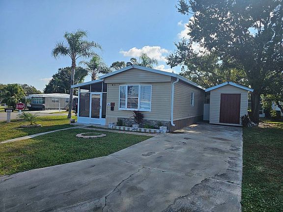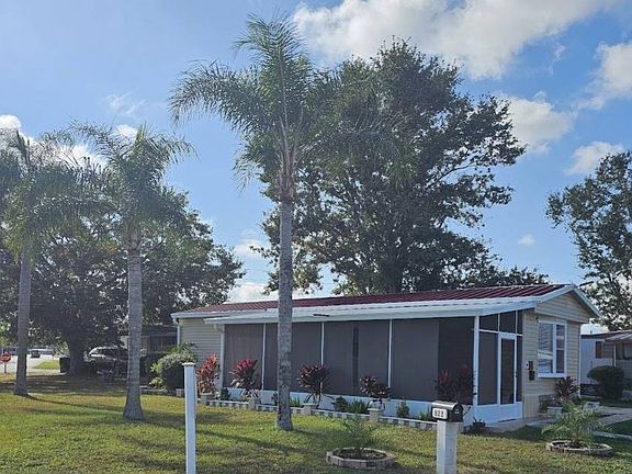 Beautifully renovated 2-bedroom - 1- bath move-in ready mobile home situated on a corner lot in a welcoming 55+ community. This home sits on leased land with a monthly lot rent of $739. Step inside to a bright open kitchen featuring custom built-in lighting, granite countertops with a waterfall edge and a modern spacious layout. The living room showcases a stunning custom feature wall complete with a fireplace creating a cozy and inviting atmosphere. Enjoy all-new flooring throughout including both bedrooms which also feature fresh paint. The fully renovated bathroom offers a luxurious touch with its large tiled walk-in shower and decorative tile wall. Outdoor living is a highlight with two screened covered porches - one even equipped with an outdoor kitchen - perfect for relaxing or entertaining. Fresh landscaping enhances the front and side yards adding curb appeal and charm. Buyer approval by the community is required. Enjoy the convenience of nearby restaurants, shopping, movie theaters, medical offices, banks and grocery stores. Easy access to I-4 and the Polk Parkway. The Orlando and Tampa airports are also within an hour drive. You're close to top attractions like Legoland, Busch Gardens, Disney, Universal, SeaWorld, and Bok Tower Gardens. Plus, the stunning Gulf Coast beaches-Clearwater, St. Pete and Sarasota - are all within easy reach along with Cape Canaveral and Daytona Beach. DISCLAIMER: While all information is considered reliable, we encourage prospective buyers to conduct their own personal inspections for a comprehensive understanding of the property's condition and measurements. Please note that American Mobile Home Sales of Tampa Bay Inc. cannot guarantee the accuracy of this information. As a buyer, you will be responsible for all closing costs, sales tax, and title transfer fees associated with the purchase. The buyer assumes full responsibility for obtaining all current rates for lot rent, fees, and any pass-on costs, as well as to familiarize yourself with the lease agreement and community regulations. For these details, please reach out to the community or park manager directly. American Mobile Home Sales of Tampa Bay Inc. is not responsible for quoting said fees or policies.