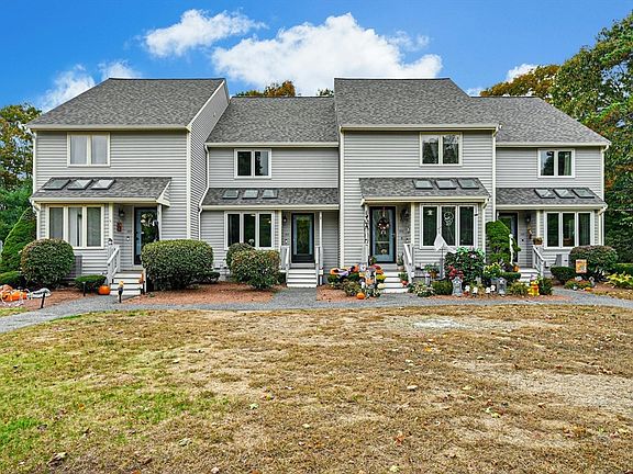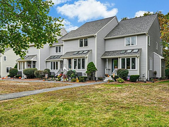 This immaculate townhouse in highly desirable Maple Brook Condos is move-in ready! The sunny, spacious eat-in kitchen w/ a half-vaulted ceiling, skylights & abundant natural light opens to elegant dining rm. Inviting living rm with slider that overlooks private deck, level lawn & pretty woods. Open floor plan perfect for entertaining. Upstairs, you will find a huge primary bedrm w/ 3 closets & Hollywood Style full bathrm. Generous 2nd bedrm w/ big closet. Convenient 2nd fl laundry. Most of the unit is freshly painted. Newer carpeting. Unfinished basement provides excellent storage space or potential for future living area. Central AC. Well-managed HOA. Pet friendly. 2 off-street parking spots + visitor parking. Neighborhood setting near shops, restaurants, stores, YMCA, Silver Lake Park, S.N.E. Trunkline Trail/Bike Path. Commuter's dream location: approx 2 mi from MBTA train & 2.5 mi to RT 495. Welcome to easy living! Offer deadline 5pm Mon Oct 28th.